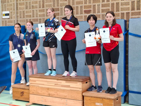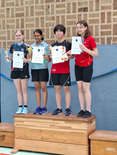 Mädcheneinzel U17: 4. Platz Natascha Pilipasenko (ganz rechts) und 3. Platz Yuxin Wei (2. v. rechts)
